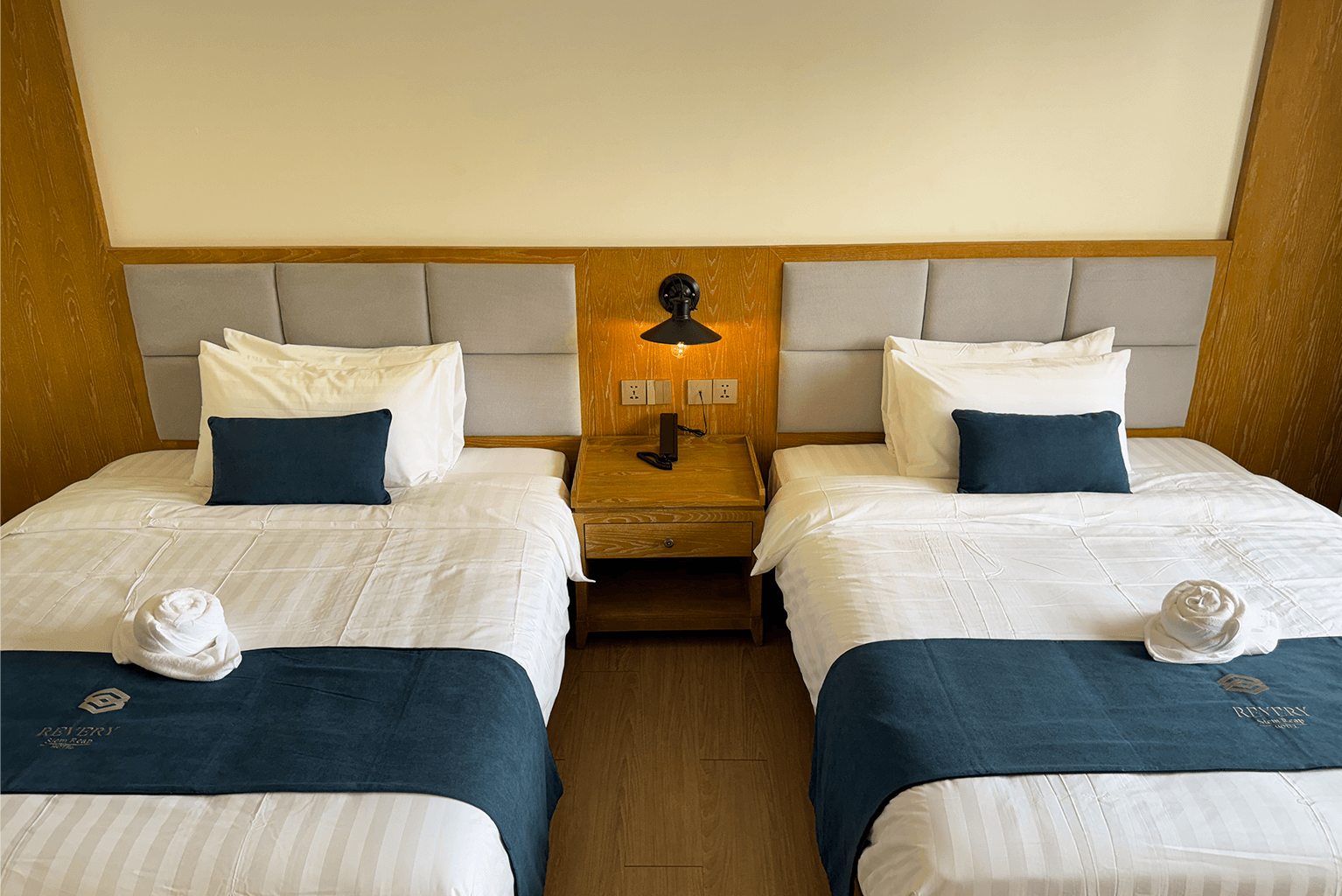 兩張中床客房 窗外即是靜謐湖畔,光影隨水波輕輕流動 為旅程增添一份寧靜與悠然。